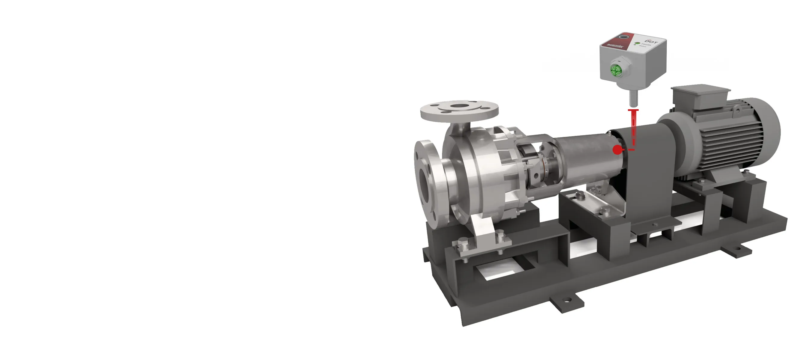 Wichtige Betriebsparameter werden überwacht und Daten in einem System gesammelt. Anwendbar für Pumpen, Kompressoren und Rührwerke zur Unterstützung der vorbeugenden Instandhaltung.
